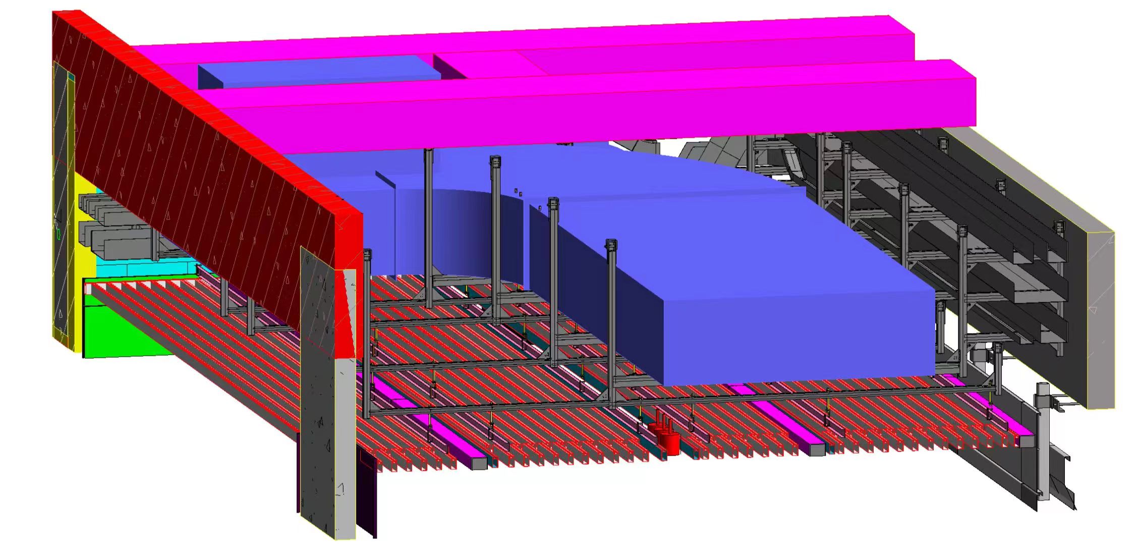 本工程分三個(gè)標(biāo)段,合計(jì)總建筑面積為56.1萬(wàn)㎡,建筑最高高度34.8m,其中一、三標(biāo)段為多層大跨度鋼結(jié)構(gòu)廠房。眾所周知,對(duì)于鋼結(jié)構(gòu)廠房支架設(shè)計(jì)一直是行業(yè)內(nèi)的難題。華固充分利用BIM技術(shù),自主研發(fā)的成品